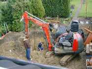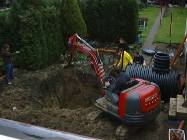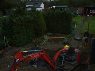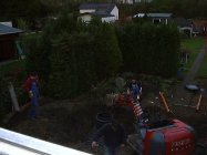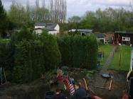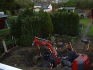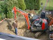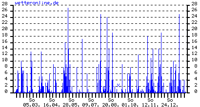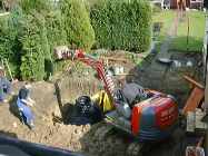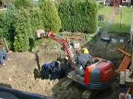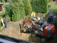 FiltertechnikDer starke Regen in Düsseldorf am 4.Juli 2009 und der starke Regen am 19.Juli 2009 reinigten den Wechselsprungfilter nicht selbstständig, was eigentlich der Sinn eines Filters mit Selbstreinigungseffekt ist.Die hintere Dachfläche vom Haus ist angeschlossen und der Anbau mit dem Dachpappendach: Man erkennt das der Filter mit Blütenstaub und Steinen verstopft ist: Hier sieht man den Anschluss der Düse von der Seite und das Modell des Filters: Nun ist die Spülung aktiv und der Strahl trifft den Filter, der Rand wird nicht vom Spülstrahl erfasst. Erst nach der mechanischen Reinigung mit dem Besen ist das Sieb sauber gewesen das das Wasser nicht mehr an der flachen Stelle stehen bleibt: Niederschlag in DüsseldorfNiederschlag mm 01.02.2006 - 31.01.2007![]() Niederschlag mm 01.02.2007 - 31.01.2008![]() Niederschlag mm 02.02.2008 - 31.01.2009![]() Niederschlag mm 02.06.2009 - 30.06.2009![]() RegenwassernutzungDurch einen Rohrbruch in der Abwasserleitung im Jahr 2002 musste ich ca. 1,5m Abflussrohr mit Hilfe meiner Freundin austauschen.In diesem Zuge reinigte ich die restlichen 20m bis zum Straßenkanal, dabei versperrten teilweise Wurzeln den Weg. Es war also was im Rohr oder im Busch. Eine Tanne hatte mit Ihren Wurzeln die Abwasserrohre aus Ton an den Muffen beschädigt. Also stand fest, das Rohr muss ausgetauscht werden. Also wurde das mit Hilfe von vielen Freunden durchgezogen. Tag 0 01.04.2004:Die Zisterne wird geliefert. Hmm ist größer als die Garage. Maik und Rainer sind so nett und tragen die hinter in den Garten.(Bild) Tag 1 (Freitag) 02.04.2004:Es wurde das alte Fischbecken mit 3 Stemmhämmer abgerissen und der Schutt in einen 7cbm Container auf der Straße gefahren. Die Platten des Hofes wurden von einem Kleingärtner abgeholt, dieser holte später auch ausgehobenen Schlamm aus der alten 3-Kammer Sickergrube. Nachdem die Platten und das Fischbecken weg war, waren ca. 7 Tonnen!!! Schutt bewegt worden. Es wurden Flaschen von alkoholischen Getränken und von Parfüm gefunden, diese wurden als Dekoration aufgehoben. Das Fischbecken wurde wieder mit Erde oder Lehm verfüllt und verdichtet. Die Baumschienen-Leihfirma brachte dann auch, nachdem ich mehrmals nachgefragt habe, den Bagger und den motorbetriebenen Stampfer. Das Fahrerhaus musste demontiert werden, damit der auch durch die Garage passte. Tag 2 (Samstag) 03.04.2004:Frühmorgens baggerten nacheinander verschiedene Baggerführer die alten Abflussleitungen aus und erstellten einen neuen Schacht für die neuen Rohre gemäß meinem vorher gezeichneten Plan. Da es zwei Punktentwässerungen (eine Fläche wird von allen Seiten auf einen Punkt hin entwässert) geben sollte, mussten die Leitungen neue Wege gehen/fließen. Als die Rohre und der Anschluss für den Überlauf der Regenwasserzisterne im Sandbett verlegt waren, wurde die Erde per Stampfer verdichtet, so dass der Bagger wieder fahren konnte. Die alte Sickergrube wollte ich ursprünglich komplett entfernen lassen, was sich aber als großer Arbeitsaufwand darstellte, da der "Blaubeton" sich als schwierig rausstellte. So wurde also nur das Nötigste weggestemmt. Beim Erstellen der ca. 2,5m tiefen Grube für die 3000l Zisterne, stießen wir wieder auf ein neues Problem. Ich wollte ursprünglich die Zisterne parallel zum Anbau aufstellen. Nun stießen wir ca. 1,5m unter dem Boden auf etwas Ungewöhnliches. Zwei Rohre zeigten sich in dem Boden, leicht gebogen auf einem Deckel aus Stahl und Beton. Nachdem wir ein Loch in den Deckel geschlagen hatten, stellte sich zum Glück nicht die erste Vermutung ein, dass es ein alter Öltank sei. Es war ein Brunnen, so alt, dass meine Mutter ihn nicht einmal kannte, das heißt das Baujahr muss vor 1970 gewesen sein, denn meine Oma hat so etwas nie erzählt. Wir wollten wissen wie tief der Brunnen ist und ich steckte einen Zollstock rein, mehr als zwei Meter, also nochmal ein Holz dran gebunden, ca. 3,5m plus 1,5m von der Geländehöhe. Ganz schön tief, wir schütten diesen zu mit der Erde, die wir noch übrig hatten, eine Saugarmatur ist noch gerettet worden und liegt nun im Garten als Anschauungsobjekt. Das Ausrichten der Zisterne gestaltete sich leicht schwierig und nahm mehr Zeit in Anspruch als geplant, die Leerrohre und das Zulaufrohr von der hinteren Dachfläche wurde angeschlossen. Eine Kernbohrung verhalf dem Leerrohr Zugang zum Keller. Tag 3 (Sonntag)04.04.2004:"Blaubeton"Wie ich an meinen Log-Dateien sehen kann ist dies ein oft gesuchter Begriff.Die Herkunft dieses Begriffes ist mir nicht bekannt und ich kann das nur versuchen abzuleiten. Der Beton hat seinen Namen wohl von seiner Farbe, was nicht anders zu erwarten war, er schimmert blau, die Oberfläche ist glatt. Beim Abstemmen von diesem Beton ist der Anteil an Kiesel im Vergleich zum Beton relativ gering. Bewehrungsstahl oder auch früher Moniereisen genannt (recherschiere doch mal selbst nach Joseph Monier). Dieses macht das Stemmen nicht wirklich einfach. Die Eigenschaften sind weiterhin, dass er wasserdicht ist und auch gegen kalkhaltige Wässer bestehen muss.