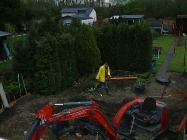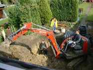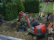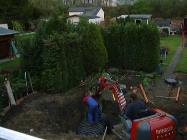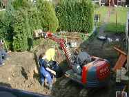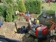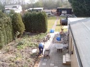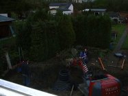 FiltertechnikDer starke Regen in Düsseldorf am 4.Juli 2009 und der starke Regen am 19.Juli 2009 reinigten den Wechselsprungfilter nicht selbstständig, was eigentlich der Sinn eines Filters mit Selbstreinigungseffekt ist.Die hintere Dachfläche vom Haus ist angeschlossen und der Anbau mit dem Dachpappendach: Man erkennt das der Filter mit Blütenstaub und Steinen verstopft ist: Hier sieht man den Anschluss der Düse von der Seite und das Modell des Filters: Nun ist die Spülung aktiv und der Strahl trifft den Filter, der Rand wird nicht vom Spülstrahl erfasst. Erst nach der mechanischen Reinigung mit dem Besen ist das Sieb sauber gewesen das das Wasser nicht mehr an der flachen Stelle stehen bleibt: Niederschlag in DüsseldorfNiederschlag mm 01.02.2006 - 31.01.2007![]() Niederschlag mm 01.02.2007 - 31.01.2008![]() Niederschlag mm 02.02.2008 - 31.01.2009![]() Niederschlag mm 02.06.2009 - 30.06.2009![]() RegenwassernutzungDurch einen Rohrbruch in der Abwasserleitung im Jahr 2002 musste ich ca. 1,5m Abflussrohr mit Hilfe meiner Freundin austauschen.In diesem Zuge reinigte ich die restlichen 20m bis zum Straßenkanal, dabei versperrten teilweise Wurzeln den Weg. Es war also was im Rohr oder im Busch. Eine Tanne hatte mit Ihren Wurzeln die Abwasserrohre aus Ton an den Muffen beschädigt. Also stand fest, das Rohr muss ausgetauscht werden. Also wurde das mit Hilfe von vielen Freunden durchgezogen. Tag 0 01.04.2004:Die Zisterne wird geliefert. Hmm ist größer als die Garage. Maik und Rainer sind so nett und tragen die hinter in den Garten.(Bild) Tag 1 (Freitag) 02.04.2004:Es wurde das alte Fischbecken mit 3 Stemmhämmer abgerissen und der Schutt in einen 7cbm Container auf der Straße gefahren. Die Platten des Hofes wurden von einem Kleingärtner abgeholt, dieser holte später auch ausgehobenen Schlamm aus der alten 3-Kammer Sickergrube. Nachdem die Platten und das Fischbecken weg war, waren ca. 7 Tonnen!!! Schutt bewegt worden. Es wurden Flaschen von alkoholischen Getränken und von Parfüm gefunden, diese wurden als Dekoration aufgehoben. Das Fischbecken wurde wieder mit Erde oder Lehm verfüllt und verdichtet. Die Baumschienen-Leihfirma brachte dann auch, nachdem ich mehrmals nachgefragt habe, den Bagger und den motorbetriebenen Stampfer. Das Fahrerhaus musste demontiert werden, damit der auch durch die Garage passte. Tag 2 (Samstag) 03.04.2004:Frühmorgens baggerten nacheinander verschiedene Baggerführer die alten Abflussleitungen aus und erstellten einen neuen Schacht für die neuen Rohre gemäß meinem vorher gezeichneten Plan. Da es zwei Punktentwässerungen (eine Fläche wird von allen Seiten auf einen Punkt hin entwässert) geben sollte, mussten die Leitungen neue Wege gehen/fließen. Als die Rohre und der Anschluss für den Überlauf der Regenwasserzisterne im Sandbett verlegt waren, wurde die Erde per Stampfer verdichtet, so dass der Bagger wieder fahren konnte. Die alte Sickergrube wollte ich ursprünglich komplett entfernen lassen, was sich aber als großer Arbeitsaufwand darstellte, da der "Blaubeton" sich als schwierig rausstellte. So wurde also nur das Nötigste weggestemmt. Beim Erstellen der ca. 2,5m tiefen Grube für die 3000l Zisterne, stießen wir wieder auf ein neues Problem. Ich wollte ursprünglich die Zisterne parallel zum Anbau aufstellen. Nun stießen wir ca. 1,5m unter dem Boden auf etwas Ungewöhnliches. Zwei Rohre zeigten sich in dem Boden, leicht gebogen auf einem Deckel aus Stahl und Beton. Nachdem wir ein Loch in den Deckel geschlagen hatten, stellte sich zum Glück nicht die erste Vermutung ein, dass es ein alter Öltank sei. Es war ein Brunnen, so alt, dass meine Mutter ihn nicht einmal kannte, das heißt das Baujahr muss vor 1970 gewesen sein, denn meine Oma hat so etwas nie erzählt. Wir wollten wissen wie tief der Brunnen ist und ich steckte einen Zollstock rein, mehr als zwei Meter, also nochmal ein Holz dran gebunden, ca. 3,5m plus 1,5m von der Geländehöhe. Ganz schön tief, wir schütten diesen zu mit der Erde, die wir noch übrig hatten, eine Saugarmatur ist noch gerettet worden und liegt nun im Garten als Anschauungsobjekt. Das Ausrichten der Zisterne gestaltete sich leicht schwierig und nahm mehr Zeit in Anspruch als geplant, die Leerrohre und das Zulaufrohr von der hinteren Dachfläche wurde angeschlossen. Eine Kernbohrung verhalf dem Leerrohr Zugang zum Keller. Tag 3 (Sonntag)04.04.2004:"Blaubeton"Wie ich an meinen Log-Dateien sehen kann ist dies ein oft gesuchter Begriff.Die Herkunft dieses Begriffes ist mir nicht bekannt und ich kann das nur versuchen abzuleiten. Der Beton hat seinen Namen wohl von seiner Farbe, was nicht anders zu erwarten war, er schimmert blau, die Oberfläche ist glatt. Beim Abstemmen von diesem Beton ist der Anteil an Kiesel im Vergleich zum Beton relativ gering. Bewehrungsstahl oder auch früher Moniereisen genannt (recherschiere doch mal selbst nach Joseph Monier). Dieses macht das Stemmen nicht wirklich einfach. Die Eigenschaften sind weiterhin, dass er wasserdicht ist und auch gegen kalkhaltige Wässer bestehen muss.